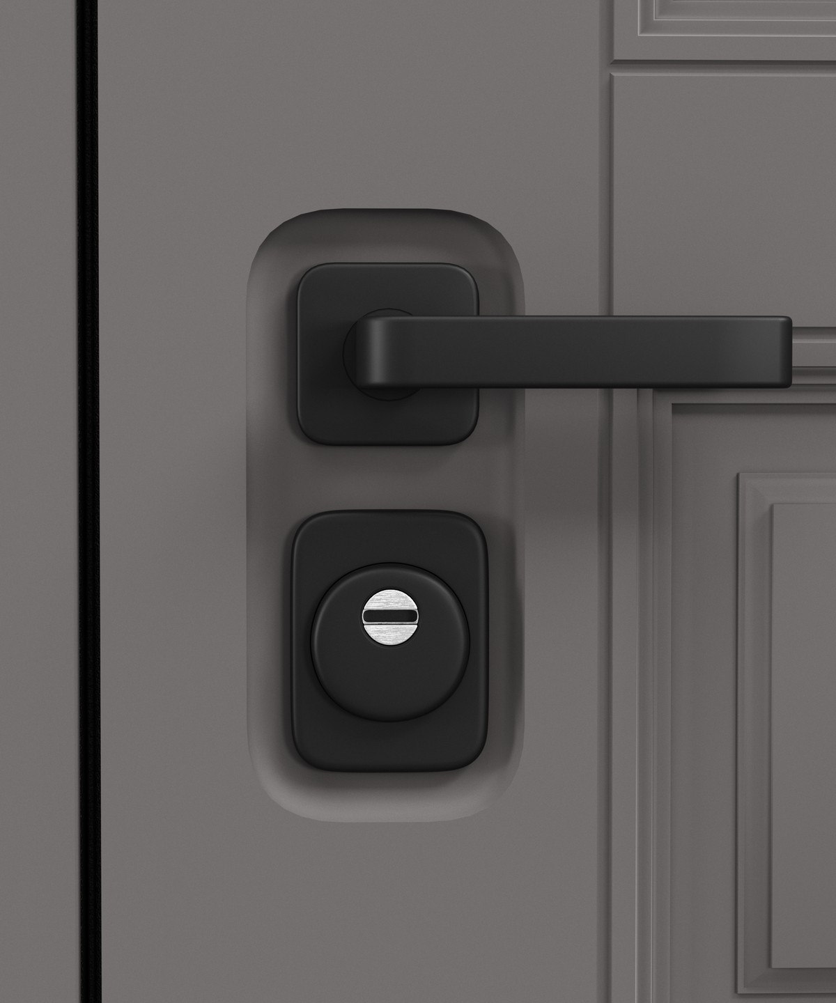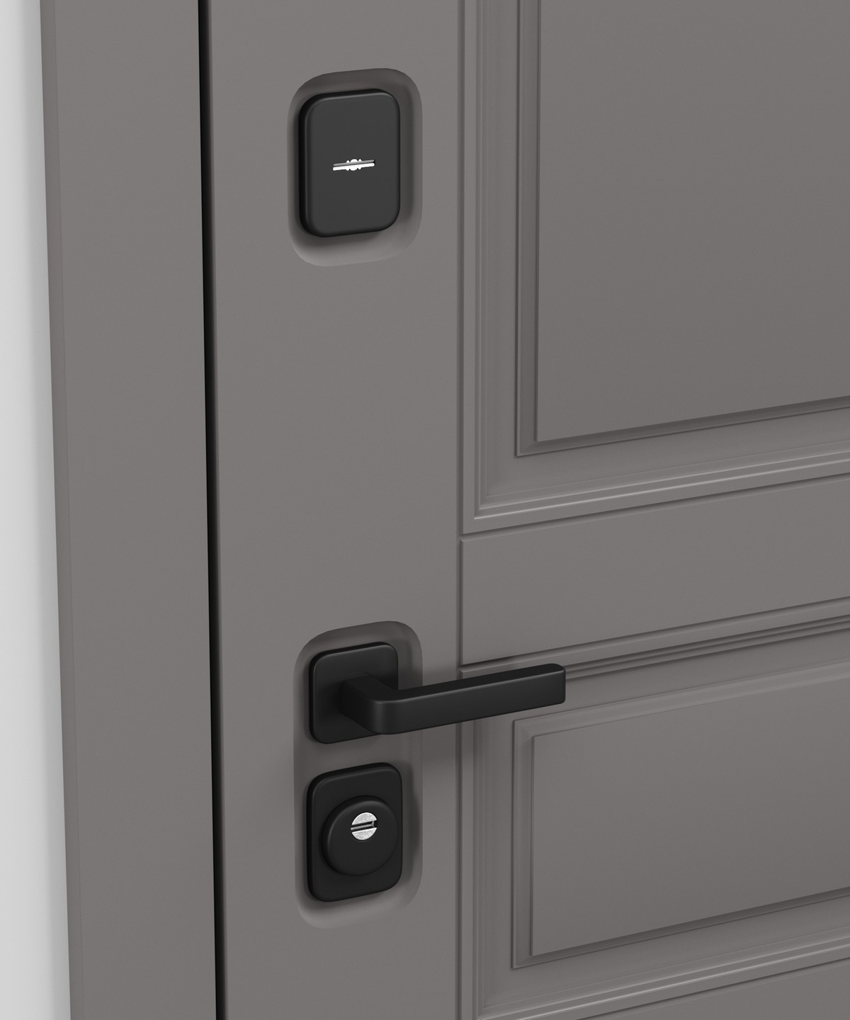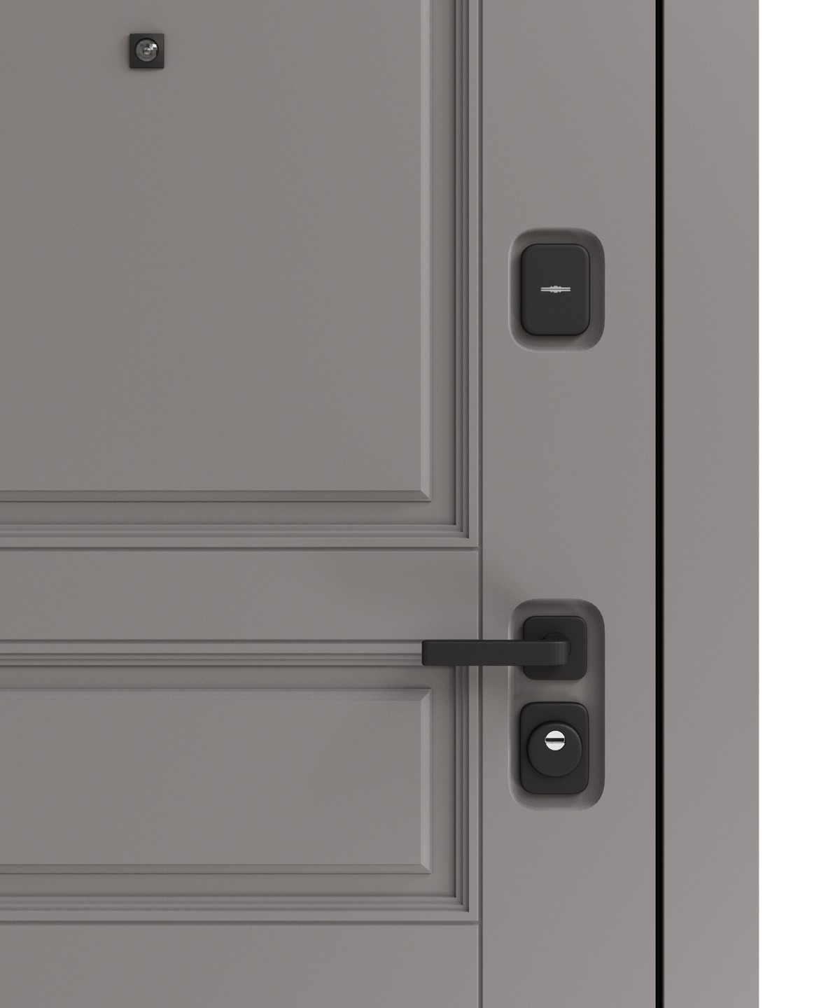 • Внешняя отделка: фактурный мдф в оттенке Грей нубук — элегантное решение для входной зоны.